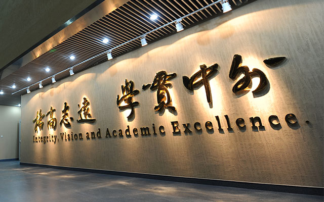 “格高志遠” 出自《禮記· 緇衣》中“言有物而行有格也,是以生則不可奪志,死則不可奪名”,以及(南梁)蕭統編著的《文選》“氣高志遠,似若無敵”。“學貫中外” 則源于“學貫中西”,以“外” 代替“西”,無論在地理上,還是在文化上都具有更大的包容性。